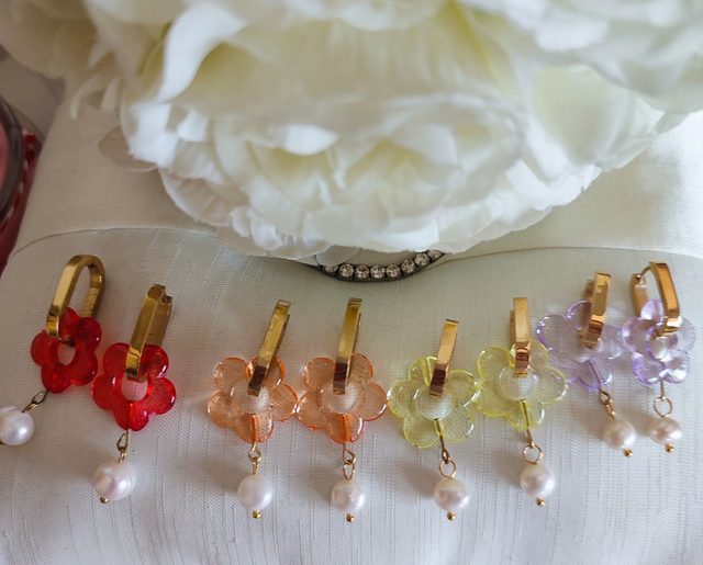 Audacieuses et solaires, les boucles d’oreilles "Iris" insufflent une touche de fraîcheur à votre style. Composées d’acier inoxydable doré, de fleurs en acrylique mauve translucide et de perles d’eau douce en finition, elles allient légèreté et caractère. Parfaites pour les femmes qui aiment affirmer leur personnalité avec finesse.