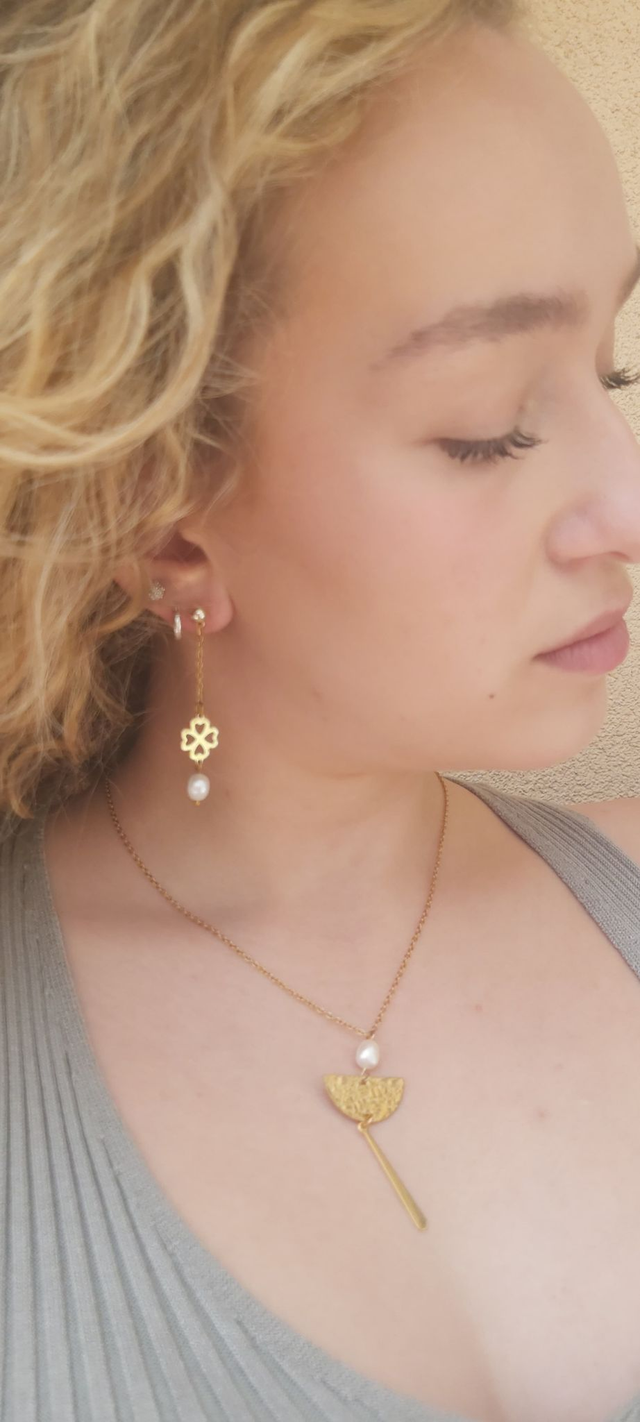 Les boucles d’oreilles "My Clover" sont une ode à la féminité libre et assumée. En acier inoxydable doré, elles mêlent délicatement un trèfle ajouré porte-bonheur à une perle d’eau douce au fini organique. Légères et élégantes, elles sont une touche parfaite et moderne à son look.