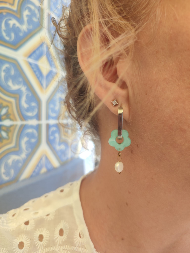 Audacieuses et solaires, les boucles d’oreilles "Bleuets" insufflent une touche de fraîcheur à votre style. Composées d’acier inoxydable argenté, de fleurs en acrylique bleu ciel tendre et de perles d’eau douce en finition, elles allient légèreté et caractère. Parfaites pour les femmes qui aiment affirmer leur personnalité avec finesse.